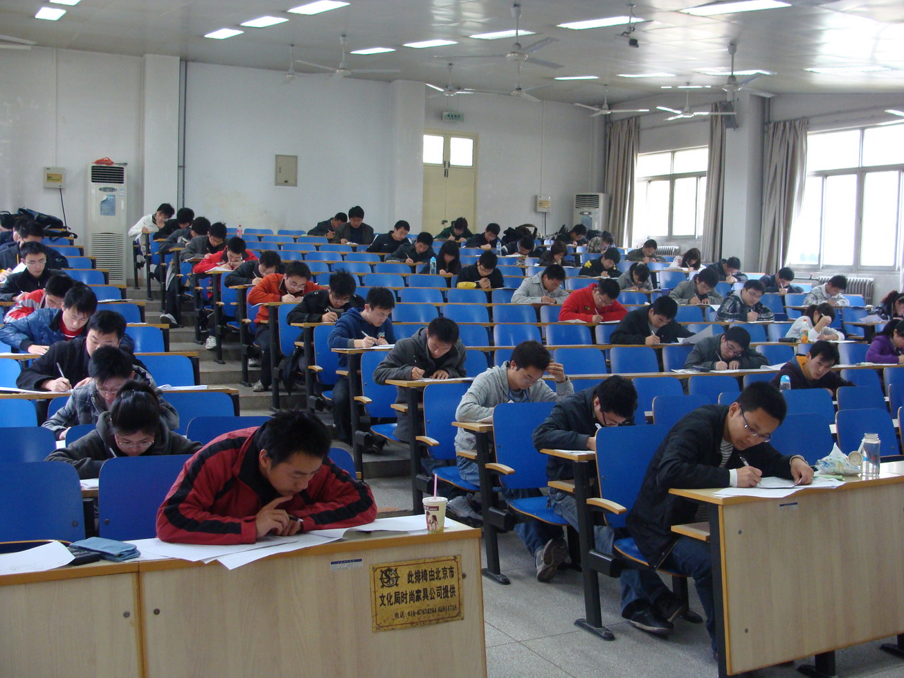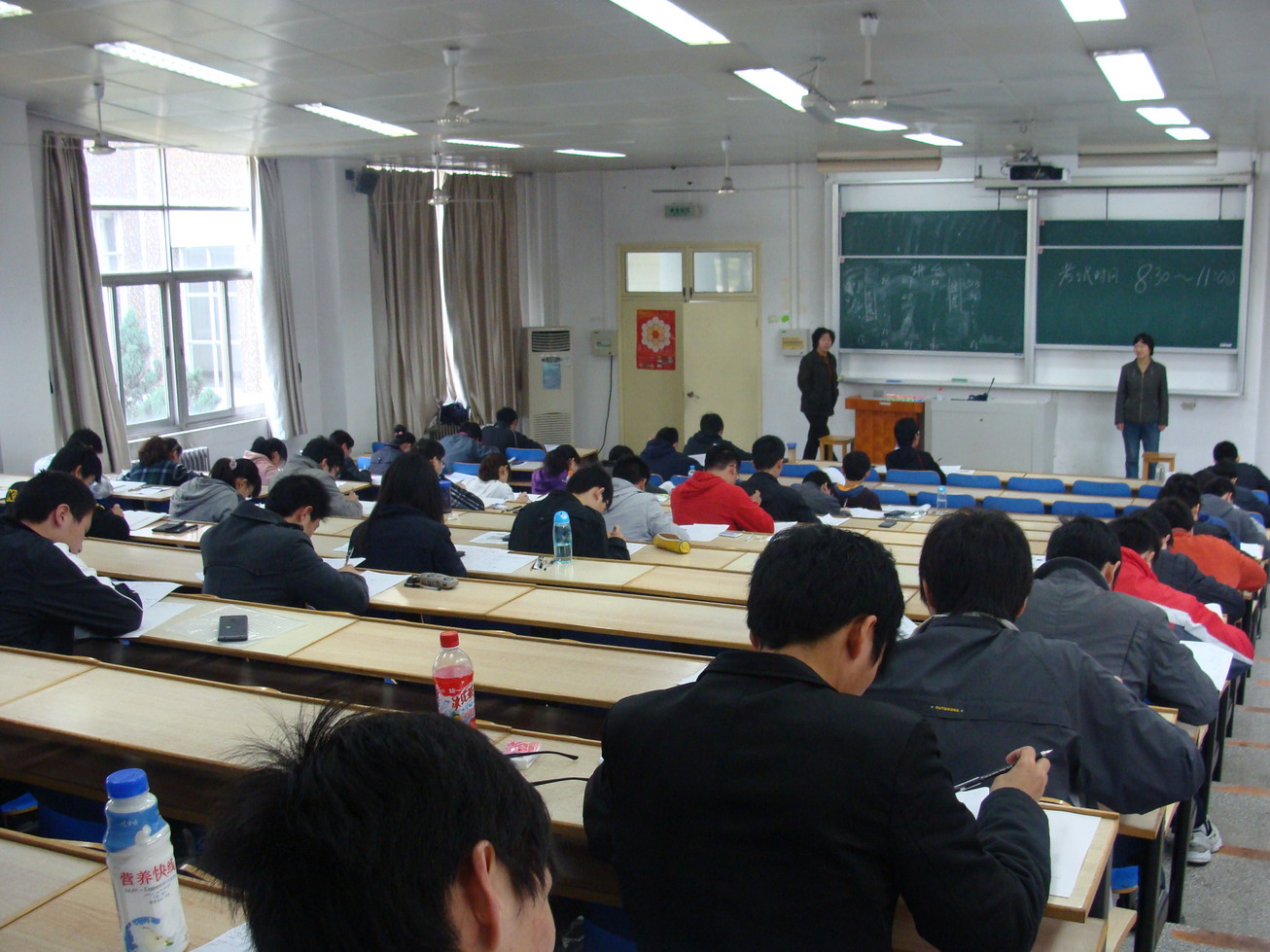 笔试按专业为单位于9日上午分别在3121、3122、3124教室举行,各专业的老师在考场内认真地来回察看着,考生们则聚精会神地思考、书写着,考场秩序井然。