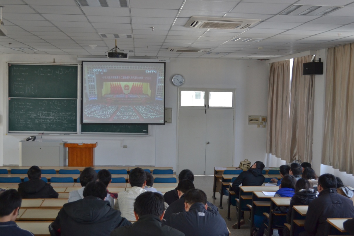 两会召开后,我们国家选举出了新一届领导集体,大家都很关注党的新政策。因此,会议开始之前,主持人通过多媒体设备为大家播放了主题为问计“两会”的焦点访谈节目,使大家了解“两会”新动向。