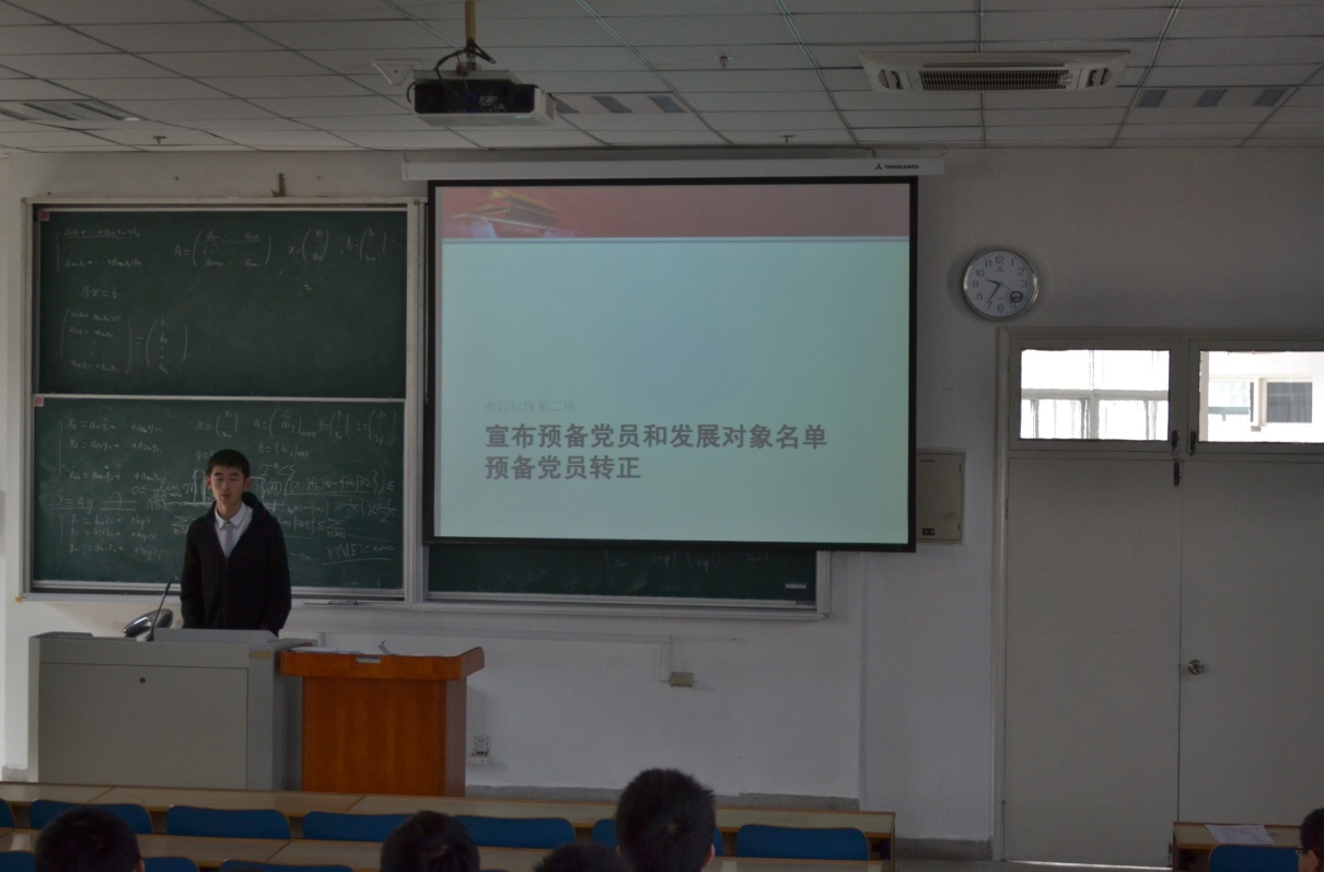 会议开始后的第一项内容为预备党员转正,经过约为一年的预备期后,0906和09218党支部的多名预备党员已预备期满,其中,安森松,文仕学,郑梦策等同志先后上台进行转正陈述,客观总结自己一年来的学习,工作上的表现,并对自己转正后提出了更高标准的要求,表示要主动向党组织靠拢,坚决拥护党的方针政策。在非正式党员同志离席后,由在场的正式党员举手表决,最终所有转正申请均顺利通过。