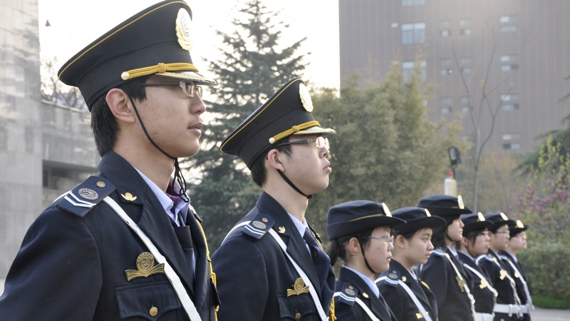 经过多日精心训练及各项工作准备,正式升旗的日子终于到来了。早晨6:45,参与升旗仪式的同学们已经穿着整齐,在北门广场集合了。7:00整,升旗仪式正式开始。同学们精神抖擞,迈着整齐的步伐,走向了升旗台。