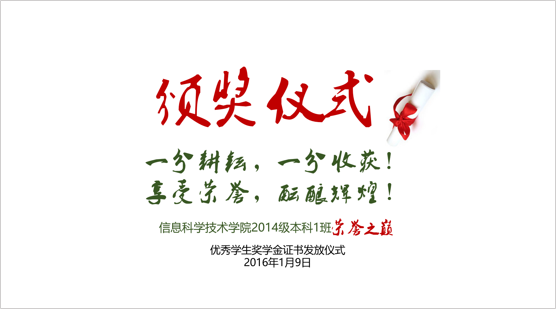 为了进一步增强同学们的荣誉感,并以此为动力鼓励同学们提高学习积极性及主动性。2016年1月9日下午信院1401班在教学三楼221教学举行了优秀学生奖学金证书发放仪式。全体获得优秀奖学金的同学,包括本学期从其他开元(中国)转到1401班的同学都登台亮相,享受这份属于自己的荣誉。同学们为每个获奖同学送上了热烈的掌声。