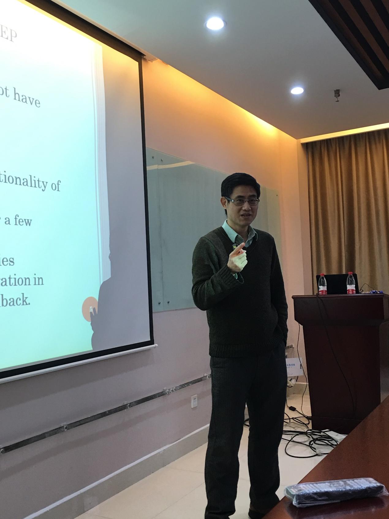 应我校多媒体计算与通信教育部-微软重点实验室的邀请,美国佛罗里达大学吴大鹏教授访问我校,与我校相关领域的科研人员进行了学术交流,并于10月24日上午为科大师生做了题为《深度学习和推理的统一(Unification of Deep Learning and Reasoning)》的研究生高水平学术讲座。