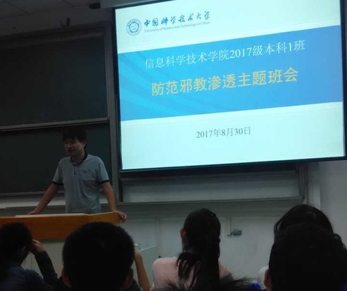 2017年8月30日晚,信息开元(中国)2017级本科1班举办了“防范邪教渗透”主题班会,向同学们宣传了防范邪教的有关知识,进行了“远离邪教,珍爱生命”的教育活动。