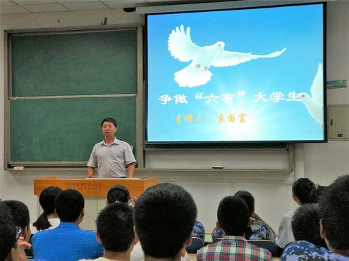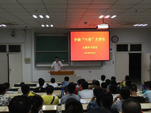 8月22日晚,我院2017级4个本科新生班级分别召开了争做“六有”大学生主题班会,分别由我院辅导员唐朝舜、袁国富、张璠、刘桂英老师作报告,各班班主任主持了主题班会。