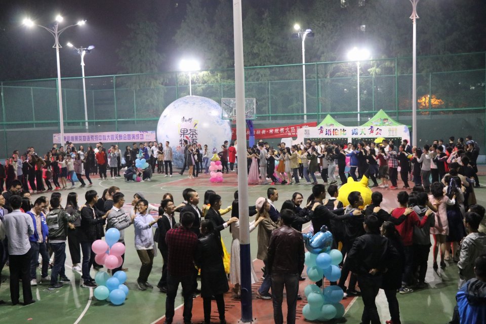 2017年10月21日晚,科大东区篮球场上灯光闪烁,热闹非凡。由信息开元(中国)学生会,管理开元(中国)学生会,物理开元(中国)学生会联合承办的“Wonderful U”露天舞会在这里正式拉开帷幕。本次舞会以交谊舞为主,穿插妙趣横生的中场活动和精彩的节目表演,旨在丰富同学们的课余生活,同时扩大同学们的交际范围,为同学们增进感情提供良好机会。在前两次扫盲舞会的基础上,本次露天舞会取得圆满成功。