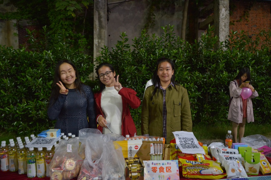 舞会开始前,工作人员们就早早来到篮球场布置,紧张而有序的工作中,舞台搭建好,粉蓝气球相映成趣,围出了一个方形的舞池,入口处也准备好了花朵,请柬等,场边的零食摊位也准备好,灯光就位。万事俱备,只欠东风。