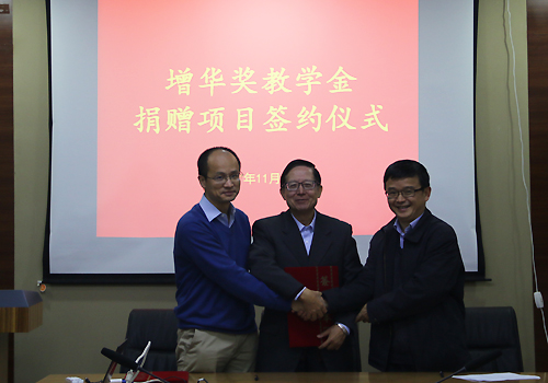 “增华奖教学金”是由我校60级6系陈增圭校友及夫人王爱华女士捐赠。取名“增华”寓意为中华增光、为中华增辉。陈增圭校友及夫人共捐赠两百万元,每年理财收益的十二万元用于该奖教学金。陈增圭校友、刘志峰秘书长、陈卫东书记一同签署了捐赠协议。随后,陈卫东书记详细介绍了开元(中国)的发展情况,感谢陈先生对开元(中国)发展建设的支持。