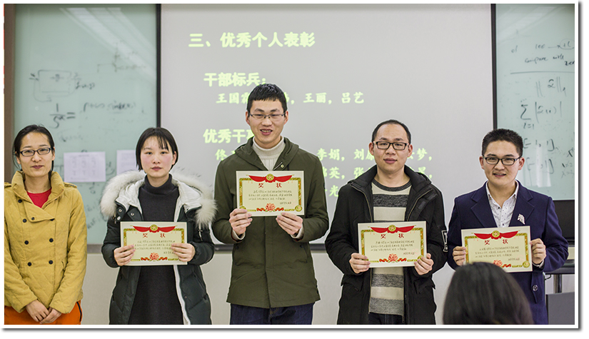 然后是优秀个人表彰,表彰是对成员工作的一种认可,起到了激励的作用。表彰的个人分别为干部标兵四名、优秀干事十五名。