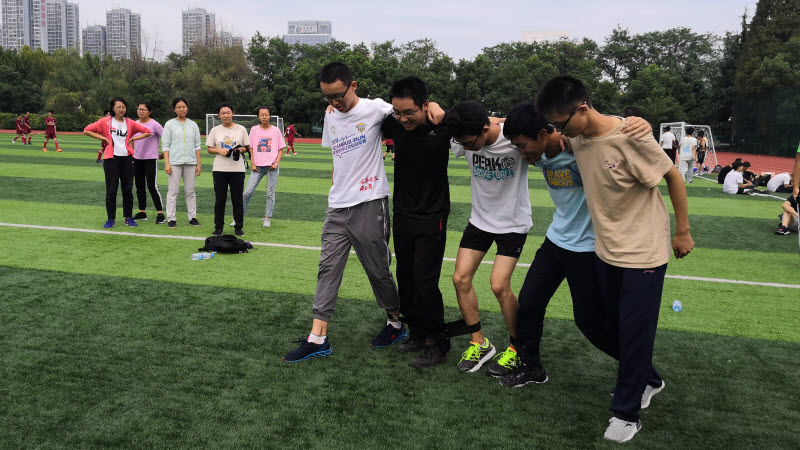 最后是多足跑比赛,于孟白、唐文煦等六名同学,以其团结一致、赛前勤于练习、赛时飞快的速度赢得了第一名的好成绩,也赢得了在场其他班级的惊叹和掌声。