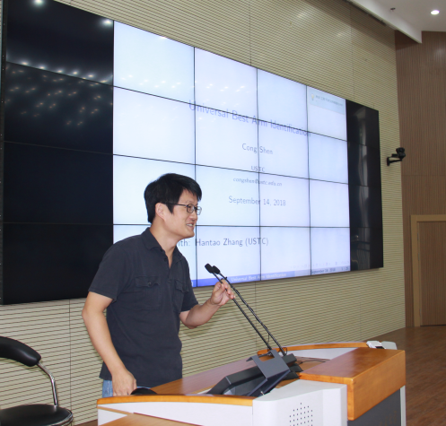 活动中,陈志波教授做了题为《未来多媒体计算(Future Media Computing)》的报告,介绍了其课题组在多媒体计算、编码、以及标准化工作中的贡献。针对未来网络的发展,朱祖勍教授(卓越青年科学家、新世纪优秀人才)做了题为《基于POF的深度可编程软件定义网络及其在5G中的应用》的报告,着重介绍了协议无感知转发(POF)以及基于此的深度可编程SDN网络。张文逸教授(优青、青年长江、百人)基于他多年的科学研究和指导学生经历,总结了十条攻读博士生学习做科研的经验体会。林宪正研究员(百人)做了题为《基2-DFT型矩阵的主枢轴变换(Principal Pivot Transforms on Radix-2 DFT-type Matrices)》的报告,介绍了他在编码工作方面的最新进展。金显庆教授做了题为《无线光通信技术与应用》的报告,介绍了课题组在可见光通信方向的最新工作与研究成果,并通过视频展示了动态可见光通信的优越性能与广阔应用前景。沈聪教授(百人)做了题为《最佳通用手臂识别(Universal Best Arm Identification)》的报告,介绍了他的科研小组在这方面的最新结果。