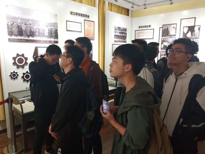 中国科学技术大学校史馆以照片及文物的形式,记录了自1958年建校至今的学校历史变迁及在此期间培养出的优秀学生和他们的事迹。校史馆开放区域为一楼和二楼,既定的参观顺序大致以时间顺序为主。参观中,同学们一边观察,一边聆听导游的讲解,在获得允许的情况下,不时用自己的手机记录下自己的所见所闻。整个参观过程持续大约四十分钟,最后大家在校史馆门口合照,本次活动顺利结束。