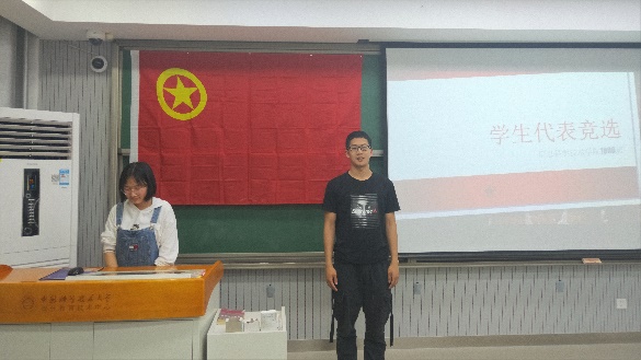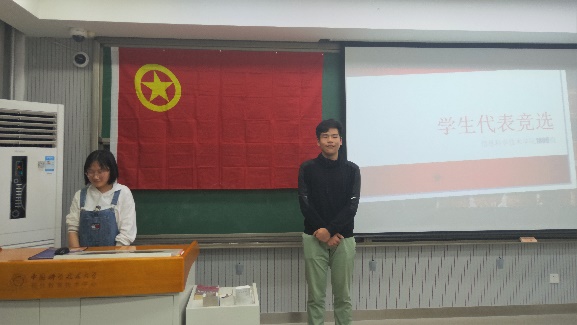 刘嫣嫣同学首先介绍了选举学生代表的流程及意义,然后向全体同学通报了本次推选的代表候选人是王毅龙,王嘉伟,赵泊尧同学,并宣布大会开始。