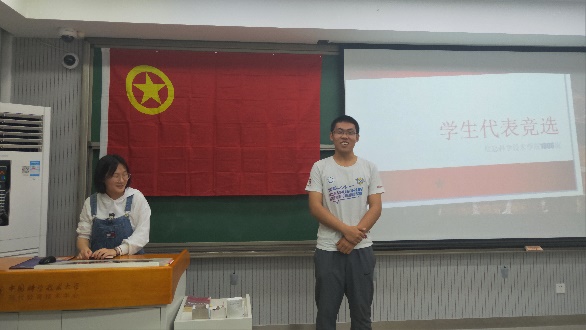 随后,3位候选人依次上台发言。王毅龙同学从对学生代表大会的认识、对自身的认知、个人的追求等方面做了发言。王嘉伟同学从自己进入大学以来的学习和工作出发,总结了自己的长处和不足,表露了强烈的竞选意愿。赵泊尧同学从个人学习、生活及承担的班干职务、家庭的熏陶、对自己的期望等方面做了发言。他们的发言各具特色,各有侧重,但是都表明了自己对学生代表大会的认识,赢得了同学们的热烈掌声和积极的支持。