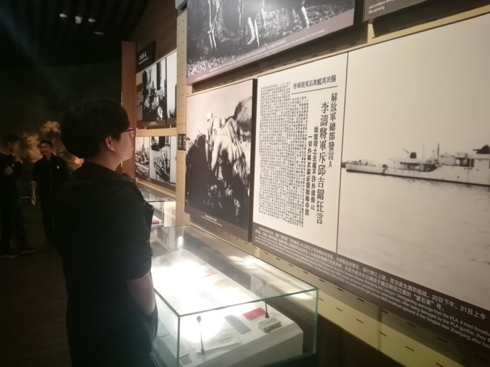 接下来,同学们开始了对展馆的集中参观。从抗战胜利到三大战役的准备阶段,从跨越长江天堑到解放沪、浙地区,丰富的实物展品配合详尽的文字和图片记录,使同学们重拾那段激昂的岁月。即使出生在和平年代,同学们似乎还是可以从展品中听到战斗的枪炮声。