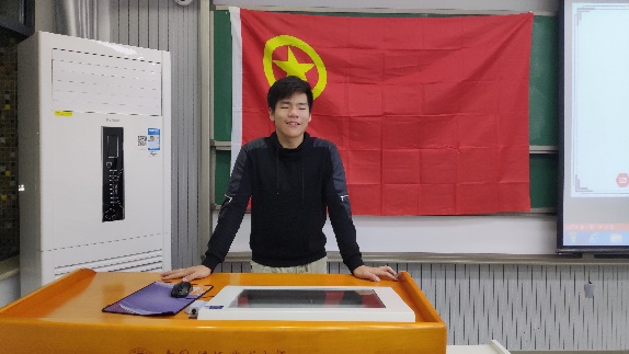 在听取完傅紫豪同学的介绍后,班长王毅龙同学和副班长王嘉伟同学依次上台寄语。王毅龙同学结合五四运动历史激励同学们继续发扬五四精神,把树立远大理想和脚踏实地统一起来,担负起时代赋予的光荣使命,奏响新时代的青春之歌。王嘉伟同学则分享了作为优秀团干的心得和作为党的后备主力军的思想理念以及青年对生活应有的积极、健康、向上的态度。