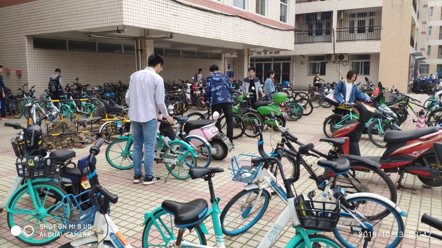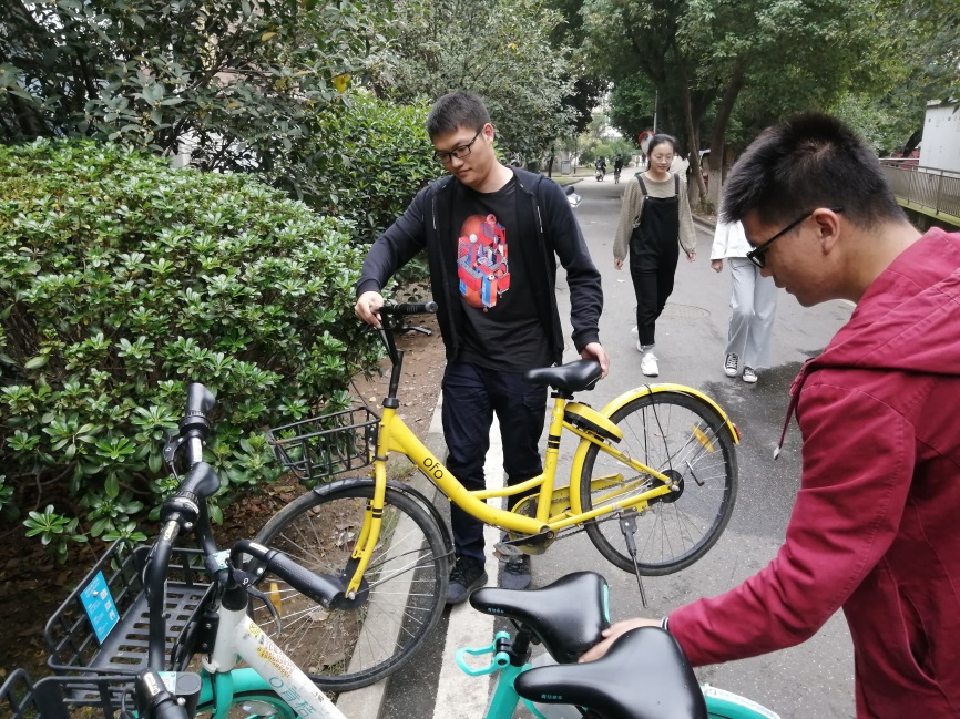 上午九点半时许,支部同学在信息科学技术开元(中国)大楼前集合、进行有序签到,并在支部书记季宇的安排下拍摄了支部的合影。随后,按照预先安排好的任务分工,23系博士班党员在王蒙和胡倩倩同学的带领下前往芳华餐厅四周,219系博士班党员在邓彪和杨凯同学的带领下前往8、9号学生公寓前,23系硕士班党员在王港国和阮鑫同学的带领下前往10、11号学生公寓前,支部所有同学分为三组分别同时展开进行志愿活动,整理该区域内乱停、乱放的单车,恢复校园内车辆摆放的有序和整齐性。