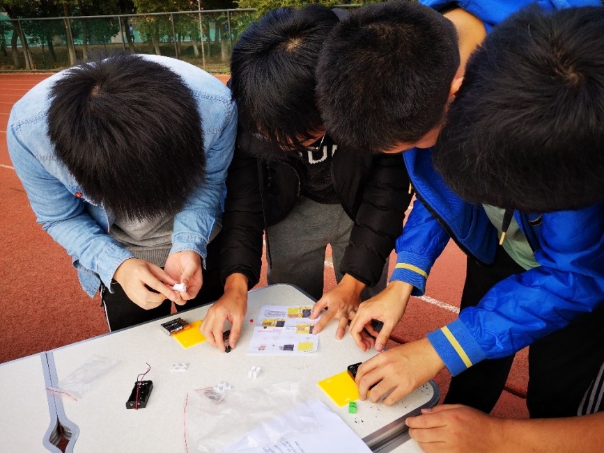 于是,在各个队伍集结完毕之后,比赛正式拉开帷幕。大家先是集中在起点,进行摩尔斯密码机的组装,以完成第一份情报的交接。大家分工有序,相互合作,虽然中途不免遇到一些小障碍,但凭借团队的智慧和力量,大家最终都成功组装完毕,完成了第一个环节,紧接着便前往第二个活动点。