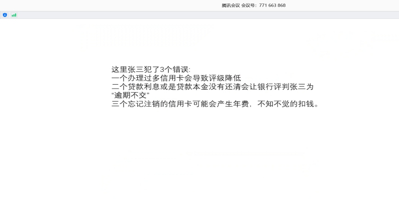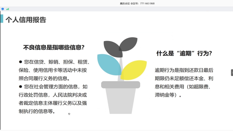 王百宗老师进行简单开场后,首先由赵泊尧同学为同学们播放国家开发银行《助学贷款业务宣传片》,该宣传片以生动的语言与实例向同学们介绍了关于助学贷款的相关知识。接着赵泊尧同学结合宣传片的内容,从个人征信系统简介、个人信用报告、信用报告查询方式、不良信用记录后果四个方面,较为全面地阐述了有关征信方面的知识,让同学们系统地了解了征信与贷款的知识。