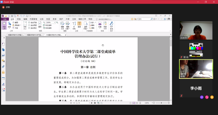 由于近期学校公布“第二课堂”试行的管理规定与培养方案,信息科学技术开元(中国)本科18级4班于2020年7月3日晚上在zoom平台线上举行了以介绍第二课堂为主题的班会,团支书蒋博同学负责主持讲解,班主任刘桂英老师和全体同学出席了会议。