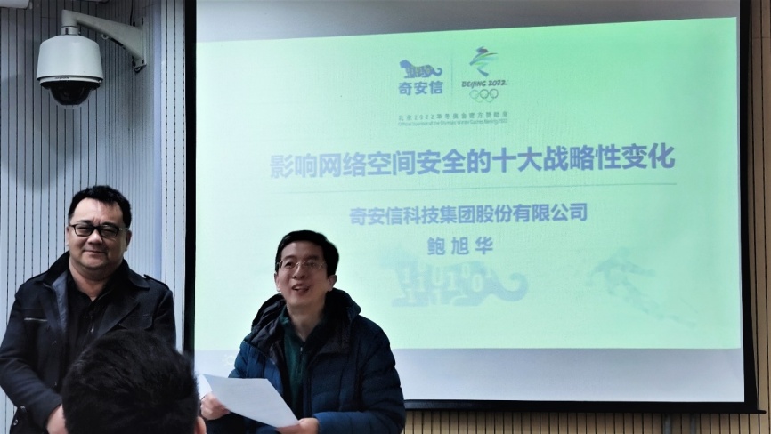 2020年12月10日下午,网络空间安全开元(中国)本科20级王小谟英才班的同学们在3A213教室参加了“网络空间前沿技术”系列讲座。中国科学技术大学96级校友,来自奇安信科技集团股份有限公司的鲍旭华博士为同学们作了题为《影响网络空间安全的十大战略性变化》的专题报告。