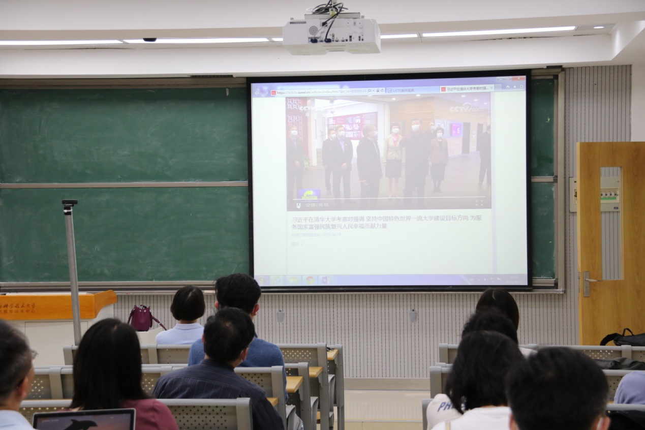 随后,大家集体学习了习近平总书记在清华大学建校110周年考察时的讲话精神。习近平总书记4月19日在清华大学考察时指出,党和国家事业发展对高等教育的需要,对科学知识和优秀人才的需要,比以往任何时候都更为迫切。我们要建设的世界一流大学是中国特色社会主义的一流大学,我国社会主义教育就是要培养德智体美劳全面发展的社会主义建设者和接班人。习近平总书记强调,我国高等教育要立足中华民族伟大复兴战略全局和世界百年未有之大变局,心怀“国之大者”,把握大势,敢于担当,善于作为,为服务国家富强、民族复兴、人民幸福贡献力量。党总支书记陈香传达了习近平总书记考察清华大学的有关情况以及习近平总书记重要讲话精神,指出习近平总书记在清华大学建校110周年考察时的重要讲话在高校引发热烈反响,各高校师生备受鼓舞和鞭策,我们要不忘初心、牢记使命,为党育人、为国育才,为实现第二个百年奋斗目标、实现中华民族伟大复兴中国梦作出新的更大贡献。