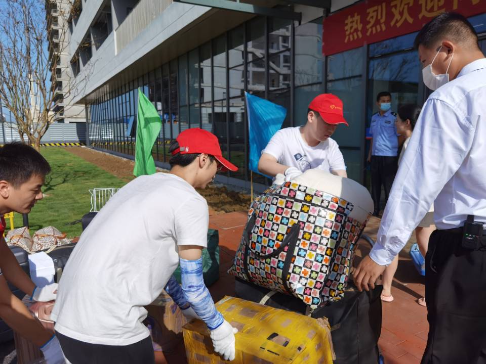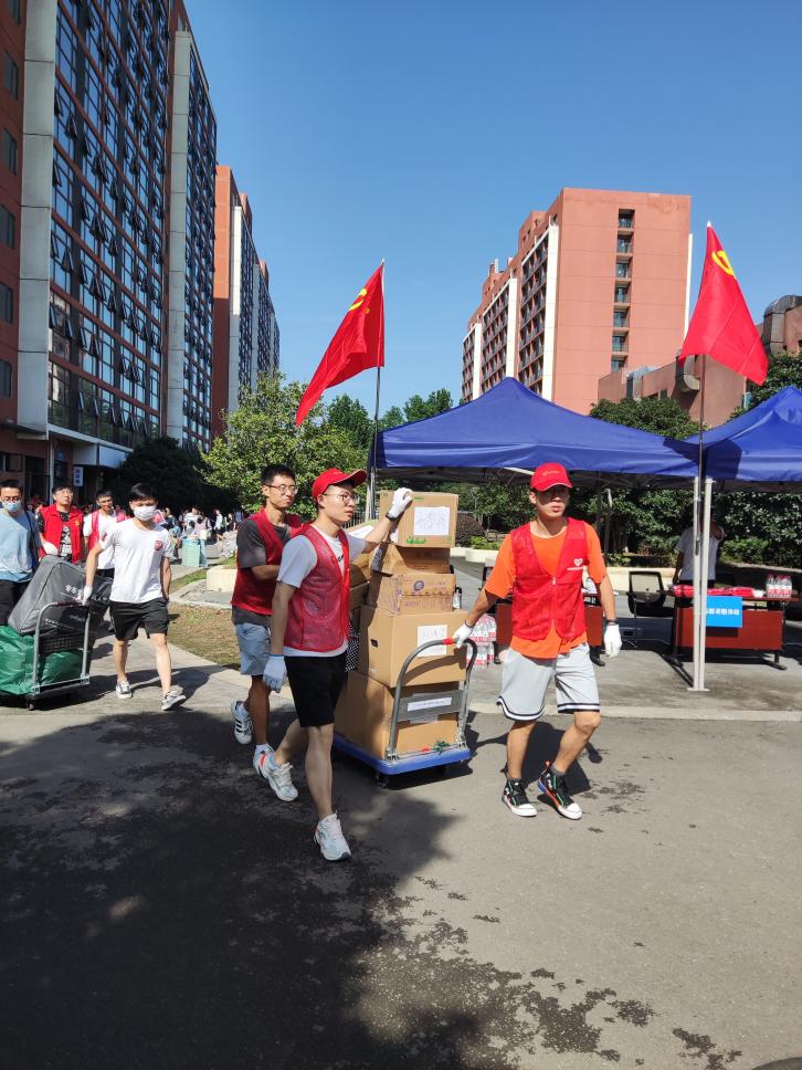 当天上午7点,志愿者穿上志愿服,带上小红帽,分成两批,分别在先研院和高新校区开展志愿服务工作。需搬迁的学生提前办理退宿,分批将包裹搬上校车,运送至高新校区宿舍。10系20级硕士一、二、三支部提前做好志愿活动准备工作,采购水、解暑药品并从系里借来小推车,以协助搬迁活动的顺利完成。