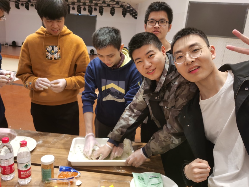 活动开始时,同学们每五人分为一个小组,大家取得相应的食材后,便迫不及待地拿起手套制作起来。和面,添馅,揉团,一气呵成。