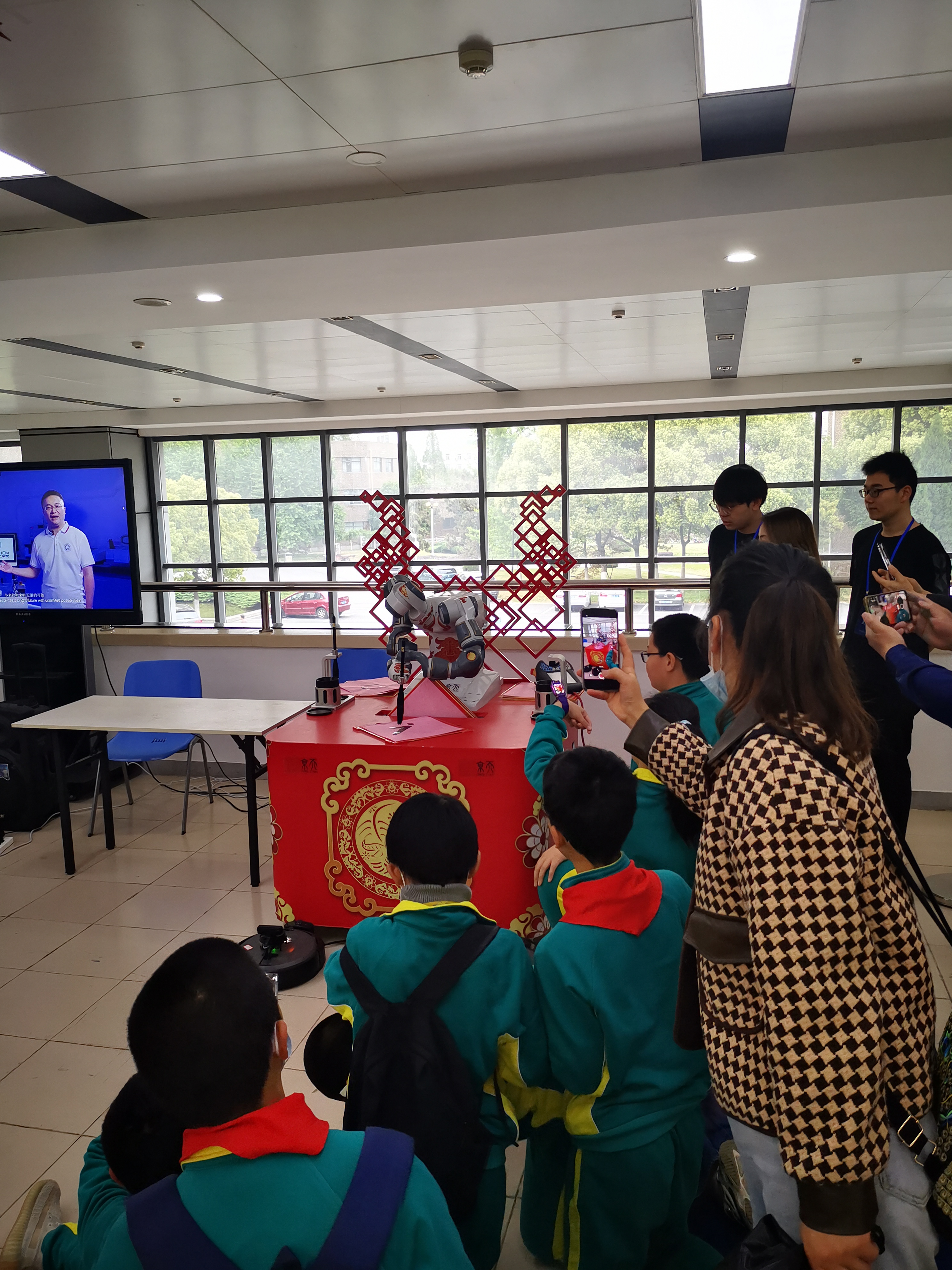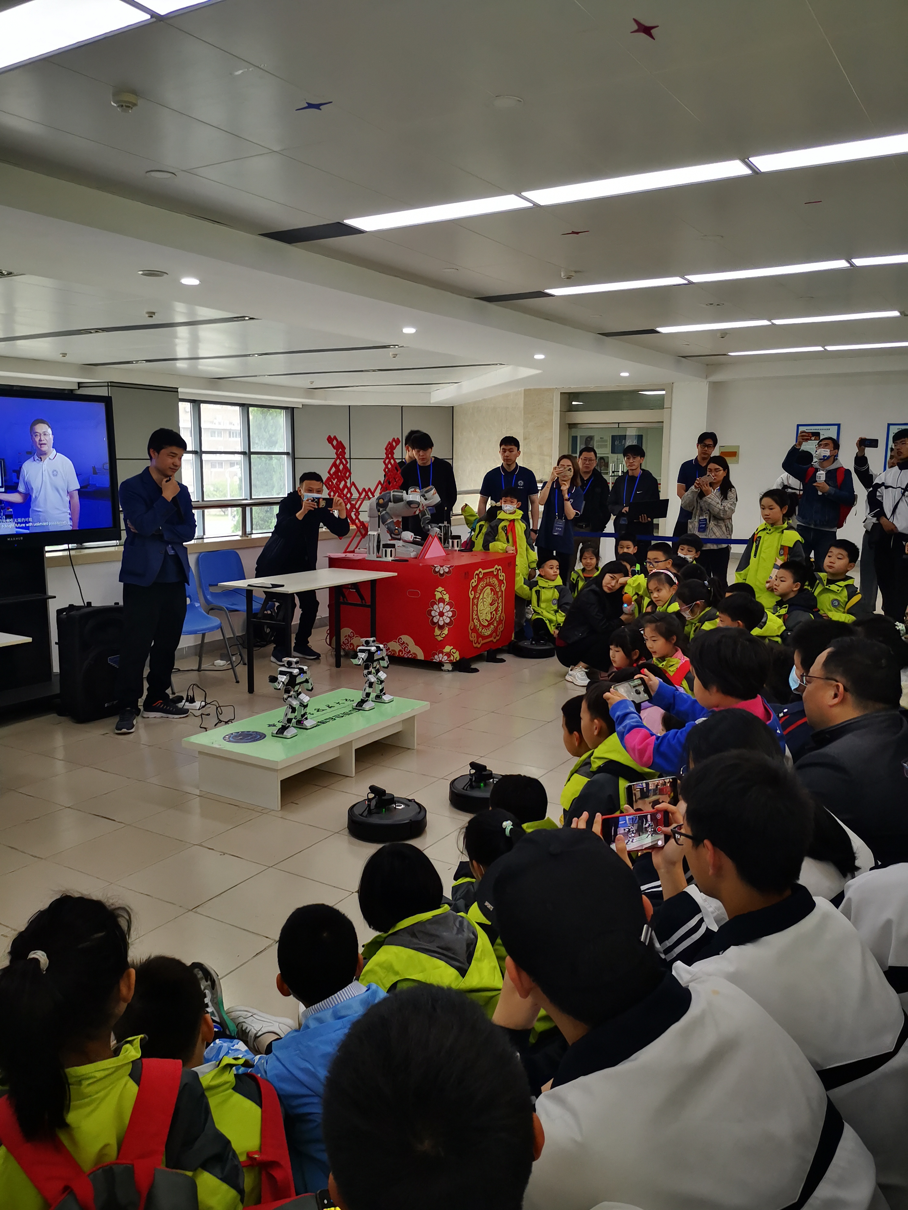 科普点志愿者详细介绍了三款机器人的区别和未来生活应用场景,机器人写毛笔字、跳着劲舞、猜拳等表演和互动,迎来阵阵欢呼声。