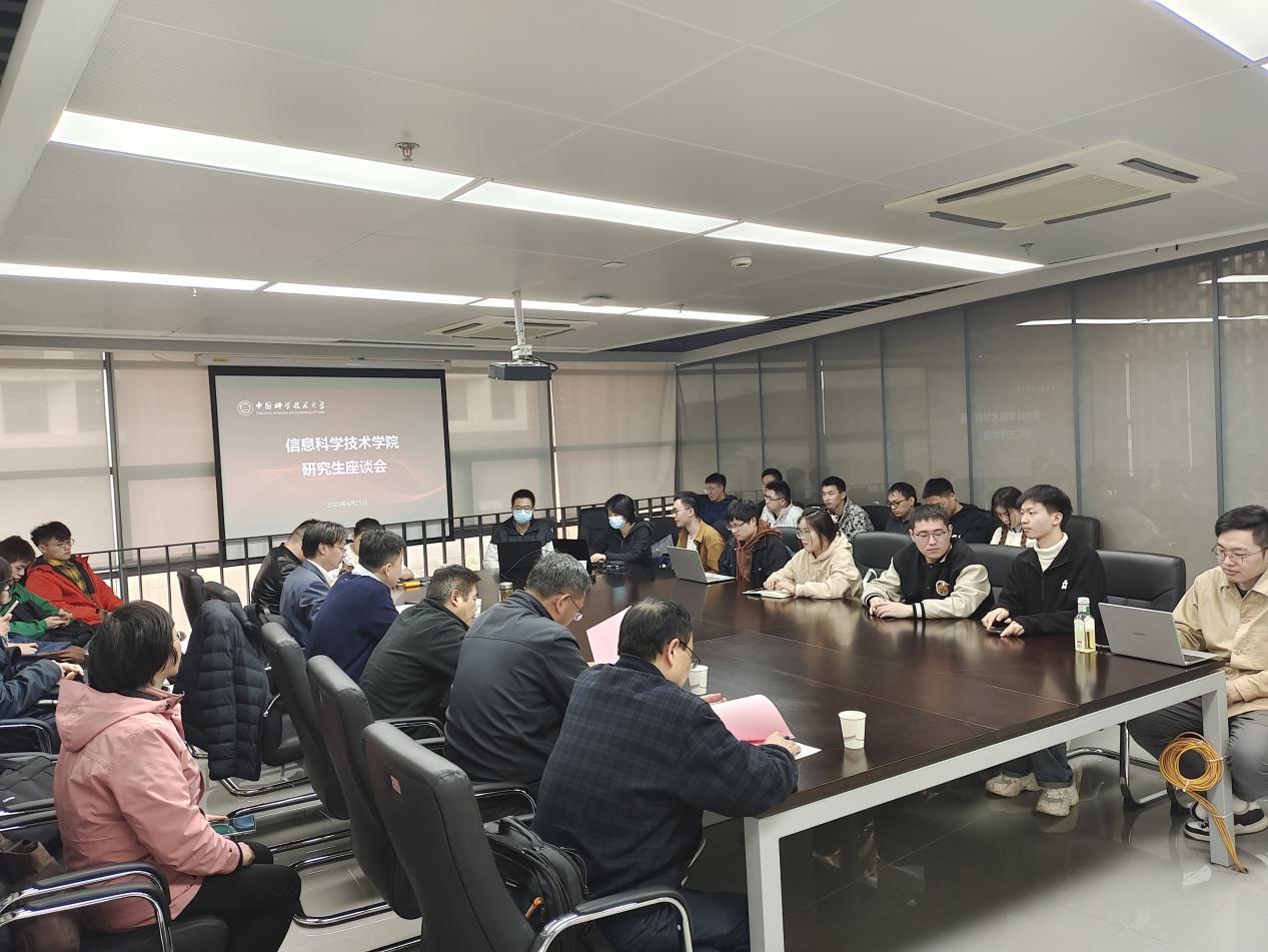 4月25日下午校研究生院副院长(兼校学位委员会办公室主任)姚华建、综合与所系结合办公室副主任夏清泉、综合与所系结合办公室业务主管许硕与我院研究生教育相关工作人员及研究生代表在高新校区信智楼A304会议室进行了交流座谈。座谈会邀请了校研究生教育质量督导专家刘锦淮、顾乃杰,校教学督导委员会督导周武旸到会交流指导。会议由信息科学技术开元(中国)副院长李厚强主持。