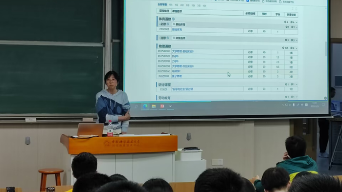 刘桂英老师首先解析了教务发布的2023年本科生全校性专业选择及中期分流工作通知,建议同学们根据情况参加具体的院系专业宣讲活动。然后详细解读了教务处网站的专业培养方案,建议同学们认真了解培养方案,更好地做出专业选择。刘老师还分享了同学们非常关心的各专业保研、继续深造率的情况,建议同学们做好规划,每一个学期的积累都是成功的基础。