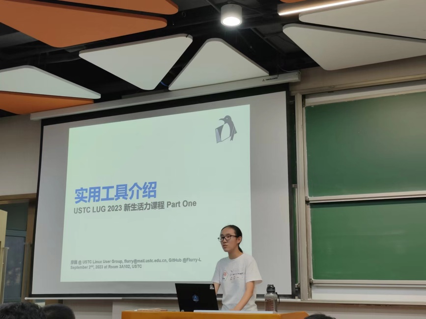 首先,廖巍学姐从校内常用网址、常见云工具、“特权”服务、学习科研常用到的工具等方面进行实用工具科普,并介绍了校学生Linux用户协会和近期组织的活动,欢迎新生踊跃加入。