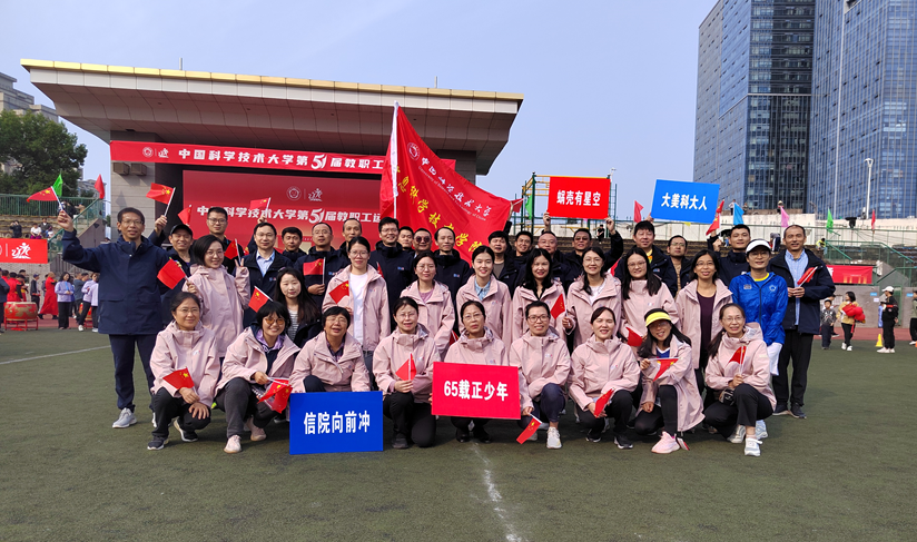 2023年10月14至15日,中国科学技术大学第五十一届教职工运动会在东区运动场隆重开幕。信息科学技术开元(中国)教职工代表队50余人参加了入场式并参加田径、集体项目和趣味项目共计30个项目的比赛。信息科学技术开元(中国)党委副书记董新美代表开元(中国)领导出席了运动会入场式。