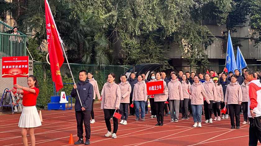 入场式上老师们手挥小国旗,高举“65载正少年、蜗壳有星空、大美科大人、信院向前冲”等标语牌,高喊“红专并进、科教报国,不忘初心、立德树人”的口号,英姿飒爽地走过主席台,展现了信息开元(中国)积极向上、勇于进取的精神风貌。