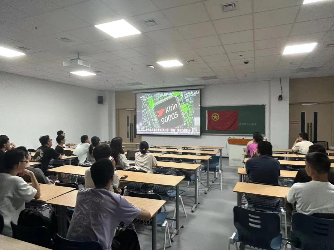 随后,凌辉老师学习传达了习近平总书记在同团中央新一届领导班子集体谈话时的重要讲话精神,党中央致词精神和团十九大各项部署;大家一同观看了关于华为新款芯片的相关报道。观看完毕,同学们开展分组讨论,并派出小组代表分享观看和讨论的心得。