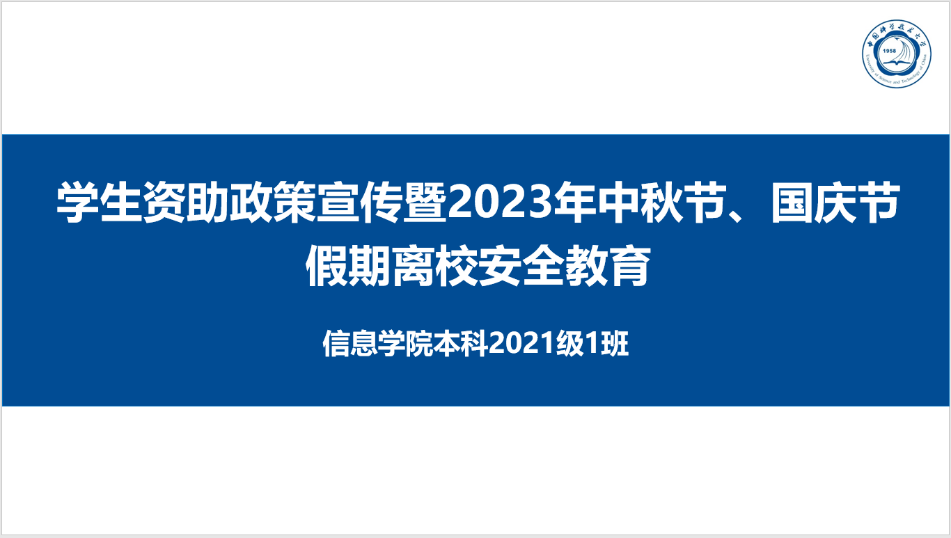 信院本科2021级1班举办学生资助政策宣传暨2023年中秋节、国庆节假期离校安全教育主题班会