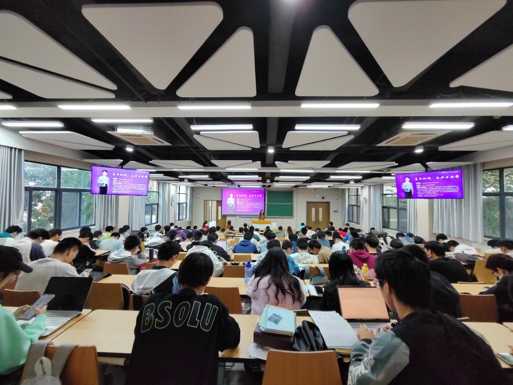 讲座中,李童童从“如何应对压力”“如何适应环境”和“如何管理负面情绪”三个方面,向大家科普了心理健康常识,譬如何为压力,压力的来源……并通过案例分析、认知重组小游戏等,引导学生对心理健康展开思考。