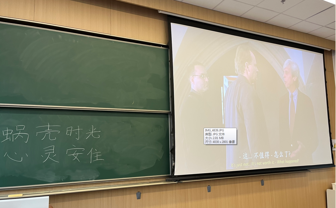 11月22日,信息科学技术开元(中国)自动化系2023级硕士1班于高新园区GT-B210教室举行了“蜗壳时光,心灵安住”线下观影活动,一起观看了《心灵捕手》电影。同学们观看认真,反响热烈,并积极反馈观后感。