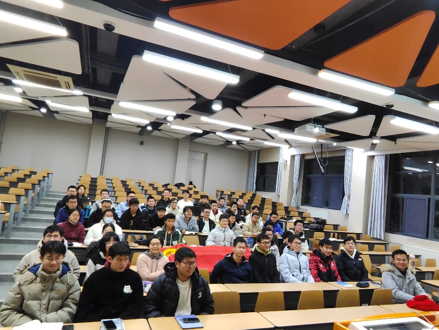团支部书记冯彦博同学组织召开了团学生活会。他带领同学们一同温习团歌和入团誓词,通知了“互联网+”大学生创新创业大赛、“挑战杯”大学生创业计划竞赛、寒假“返家乡”社会实践活动的报名事宜,鼓励同学们积极参加。他介绍了团员评优的标准,团支部副书记张宇翔同学在群内发布团员评优投票,同学们现场投票,评选出12名优秀团员,具体名单如下:冯彦博、张宇翔、王罗霓、张文歆、费思宇、张杜微、郑国权、胡泽宇、古凯文、李可心、房杰、侯浩群。