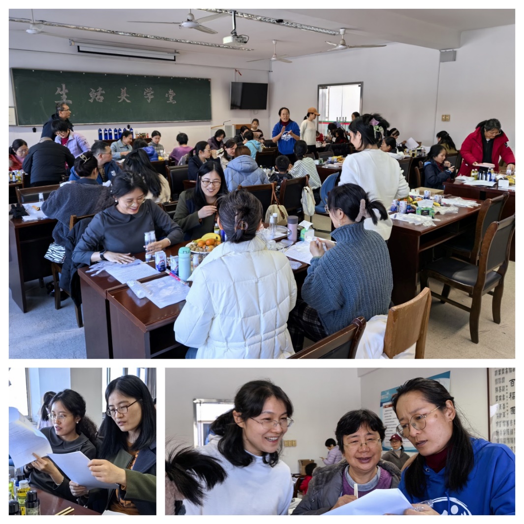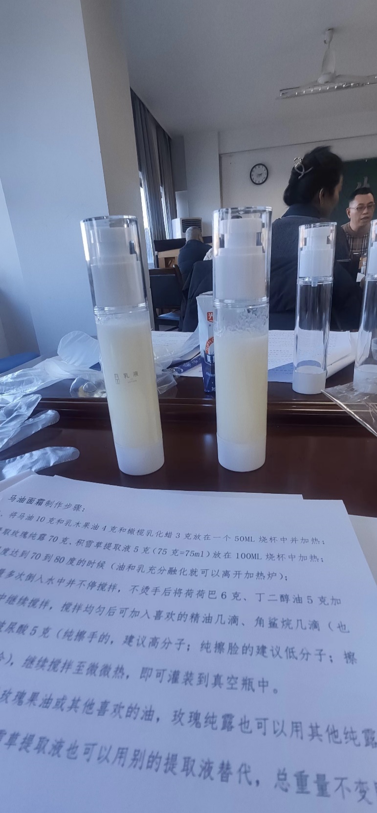活动中,大家兴致高昂,经历了一番仔细研究和柳暗花明之后,终于亲手制作出具有独特配方的润肤乳,每位老师脸上洋溢着满满的成就感和幸福感。