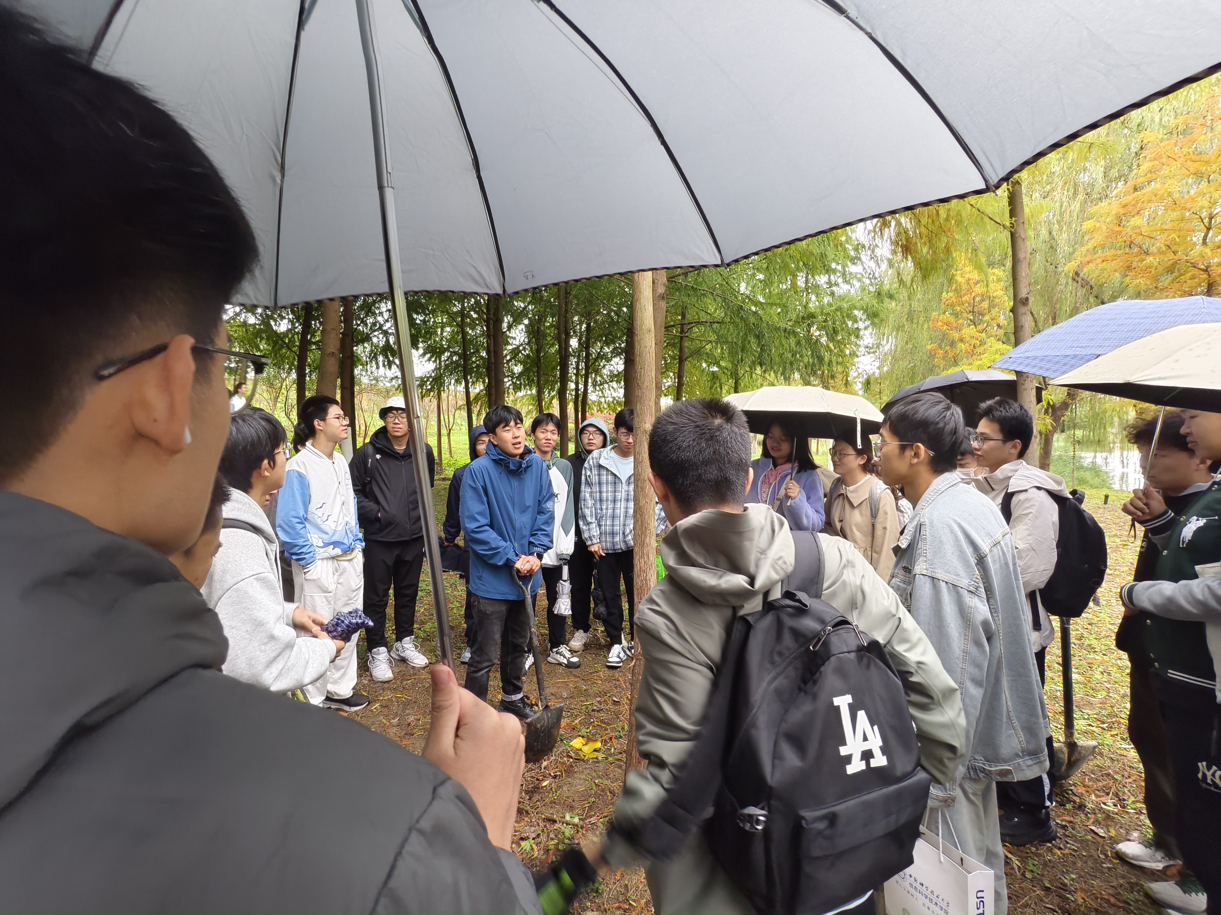 活动伊始,公园的工作人员为大家讲解森林公园里各种树木的种类及习性,以及“植物的开盘与养护”课程相关的学习内容,同学们在工作人员周围细心听讲,与工作人员积极互动,了解了该课程具体应该怎么做,做什么。