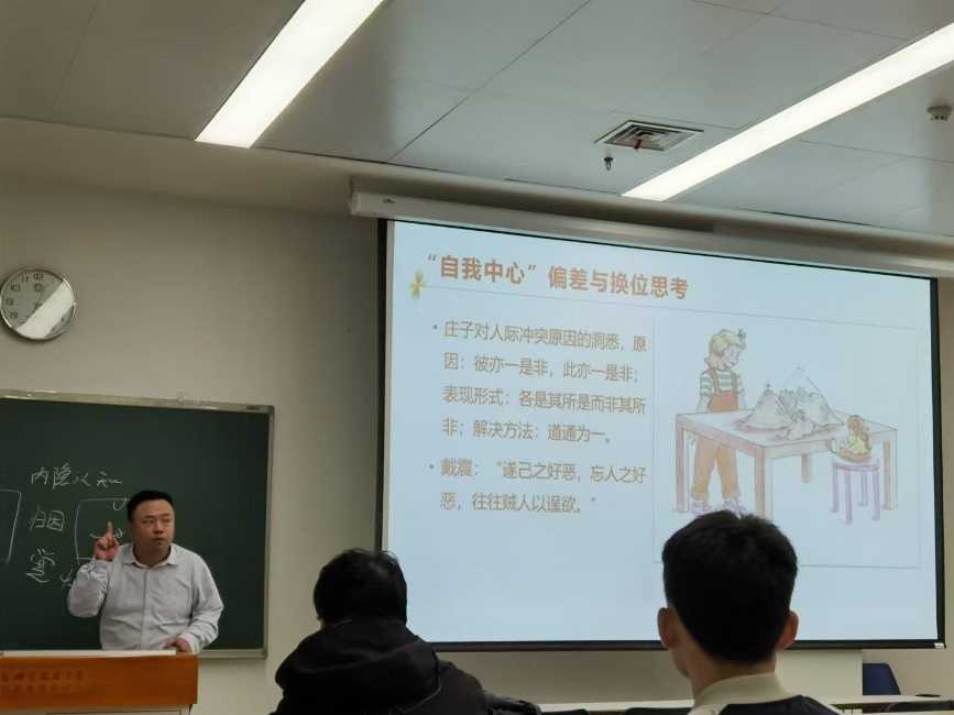 高老师也提到,“自我中心”偏差常常导致人际沟通中的冲突,解决这一问题的关键在于“换位思考”。通过庄子对人际冲突的深刻洞察,高老师阐释了人际关系中的“彼此是非”观念,并指出换位思考能够帮助我们在与他人的互动中减少摩擦,增强理解与包容,进而实现和谐的人际关系。