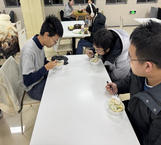 包饺子的过程轻松愉悦,但之后的品尝饺子环节更令人兴奋。在劳动过后,没有比亲自品尝劳动的的果实更令人幸福的了。晚餐时间,大家来到齐聚食堂,共同品尝下午辛勤劳作的成果。香喷喷的饺子端上桌来,旁边的同学们望眼欲穿。尽管大家都想第一时间吃到饺子,但还是井然有序地排队捞取饺子。捞到饺子的同学津津有味的品尝起来,从同学们幸福的神情中便可看出饺子的美味。这不仅因为饺子本身可口,更因为它凝聚了同学们的汗水。同学们尽情享受着饺子的美味,享受着冬至日的幸福。