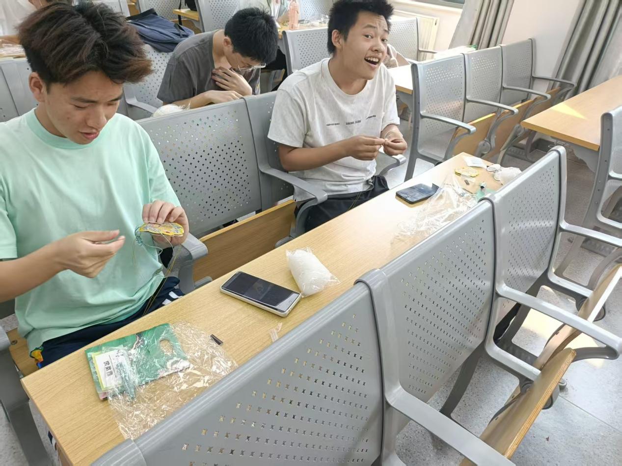 为了使同学们制作的香囊美观便携,生活委员还为大家准备了装饰用的中国结以及流苏挂饰。最终一个个精美芳香的香囊就在大家的手里诞生了。现场气氛火热,同学们各个积极主动的缝制香囊,期间大家互相帮助,谁遇到了问题都会很快得到其他同学的帮助,班主任刘老师巡回指导,关注着每位同学的进程和安全,以防针线无眼伤到同学们。现场艾草清香混合着青春气息弥漫开来。