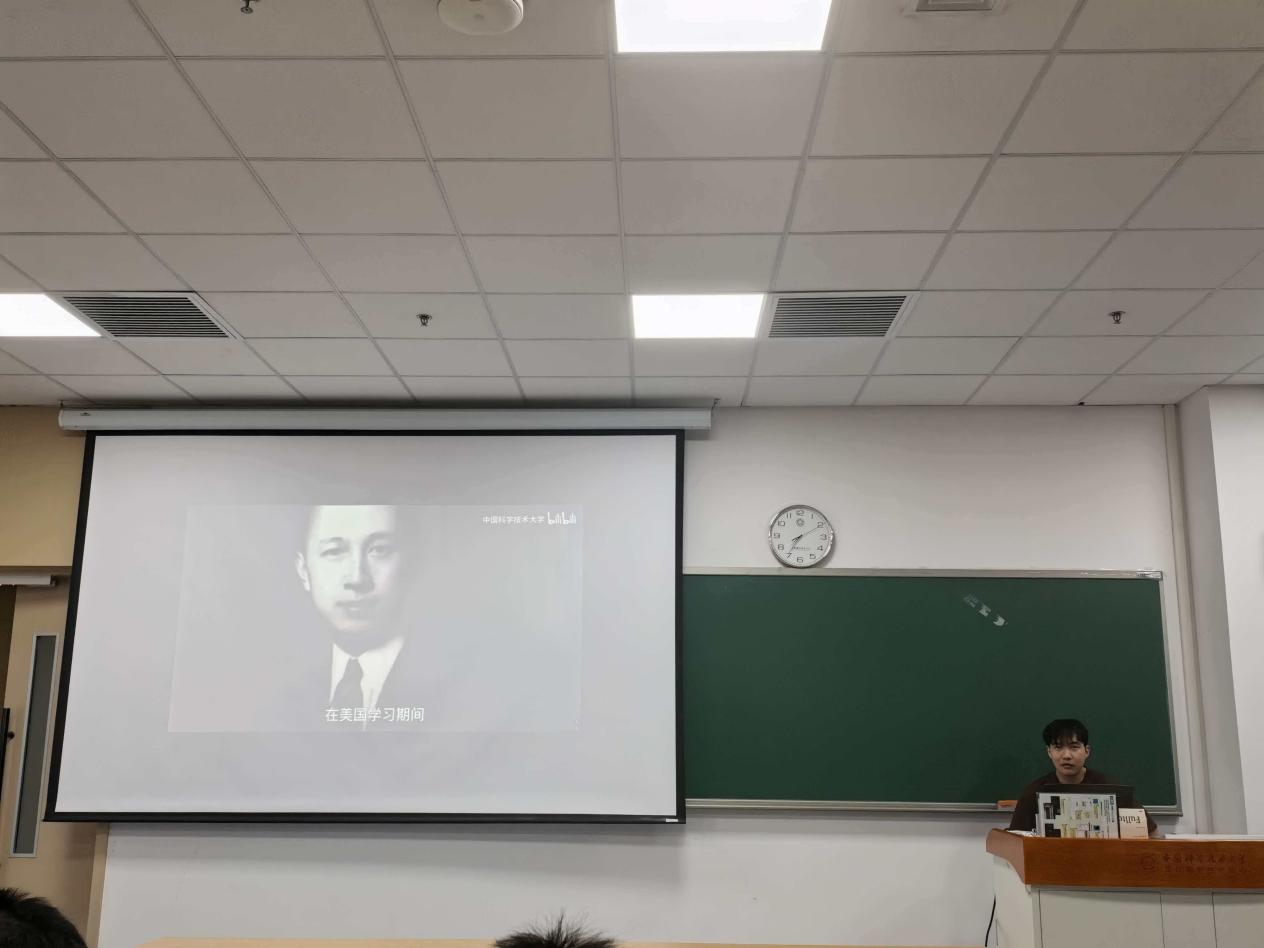 班会全程以纪实讲解、互动交流为主,紧扣中科大与国家发展共生共进的主线展开。首先,同学们共同回顾了郭永怀、赵忠尧等老一辈 “两弹一星” 功勋科学家的报国征程,深入了解先辈们在艰苦卓绝的岁月里。这些前辈科学家们舍弃优渥条件、坚守科研一线,为我国国防安全筑牢核心根基,为基础学科建设填补空白、搭建框架的奠基伟业。一段段朴实的报国故事,让同学们真切感受到老一辈科学家以身许国、无私奉献的赤子之心,也读懂了中科大与生俱来的爱国底色。